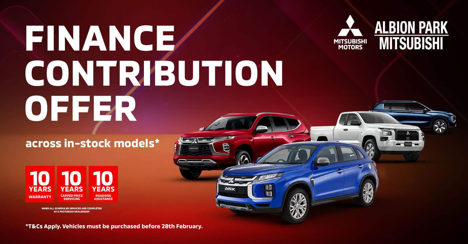 Looking to upgrade? Our Finance Contribution Offer is available across in-stock Mitsubishi models at Albion Park Mitsubishi. With added value and Mitsubishi’s 10-Year Warranty, now’s the time to make your move. Fill out the form below to secure yours.